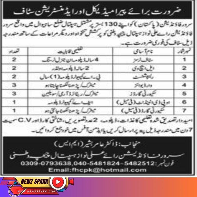 14 Jobs for Paramedical and Administration Staff in Sarwar Foundation 2024