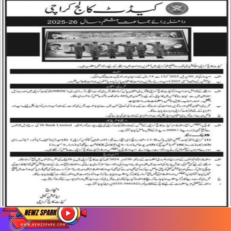 Admission Notice for 8th Class in Cadet College Karachi 2025-2026