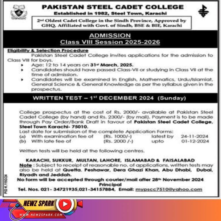 Admissions 2025 in Pakistan Steel Cadet College