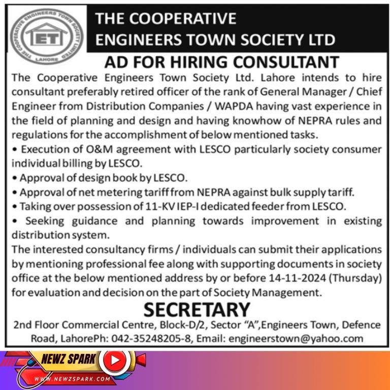 Design and Planning Consultant Job in The Cooperative Engineers Town 2024