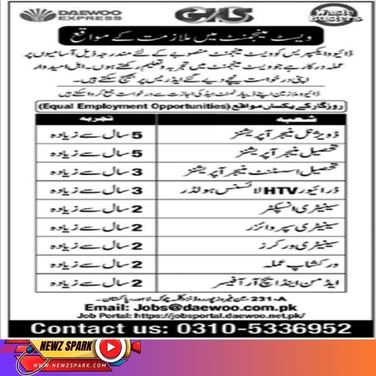 Divisional Manager, Tehsil Manager, Admin and HR Officer Jobs in Daewoo Express 2024