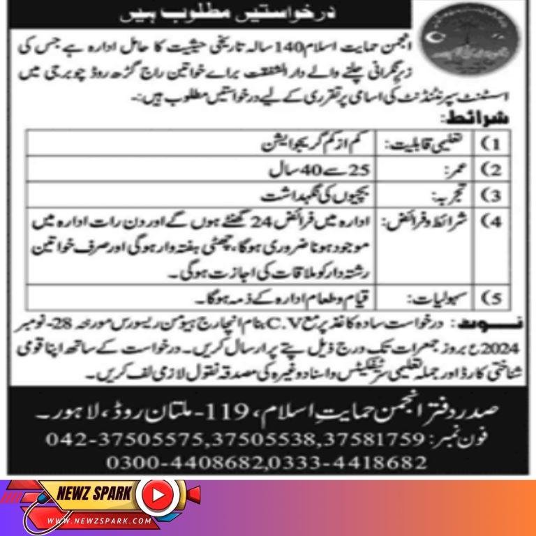 Job for Assistant Superintendent in Anjuman e himayat e Islam 2024