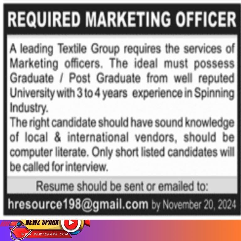 Career, Group, Jobs, Marketing, Officer, Pakistan, Textile