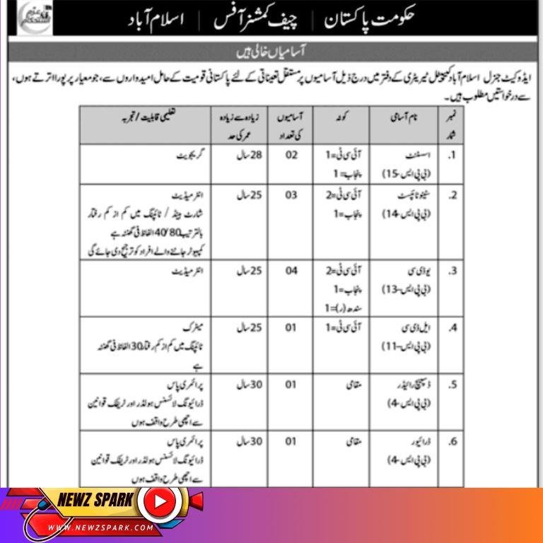 Jobs for Assistant, Steno-typist, UDC, LDC, Dispatch Rider and Driver in Advocate General Islamabad Office 2024
