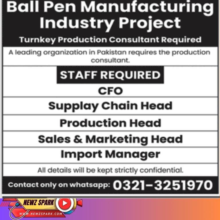 Jobs for CFO, Supply Chain Head, Production Head, Sales and Import Head in Ball Pen Manufacturing Industry 2024