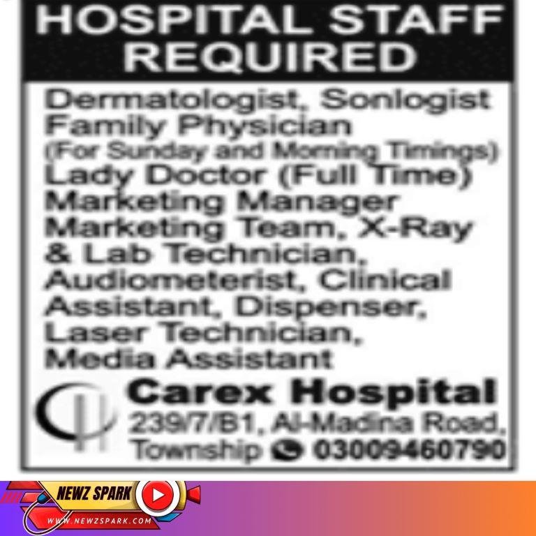 Jobs for Dermatologist, Physician, Doctor, Manager and Lab Technician in Carex Hospital 2024