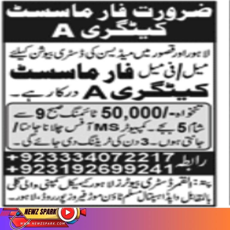 Pharmacist Category A Job in Medicine Distribution Company Lahore 2024