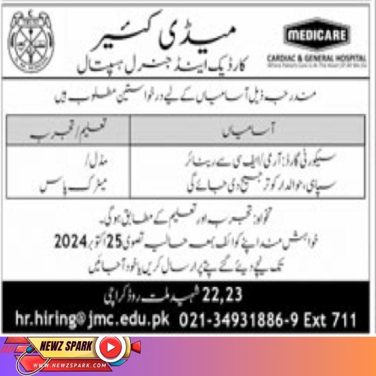 Security Guard Jobs in Medicare Hospital Karachi 2024