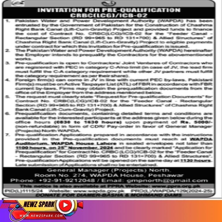 Tender for Construction of Chashma Right Bank Canal in Wapda 2024