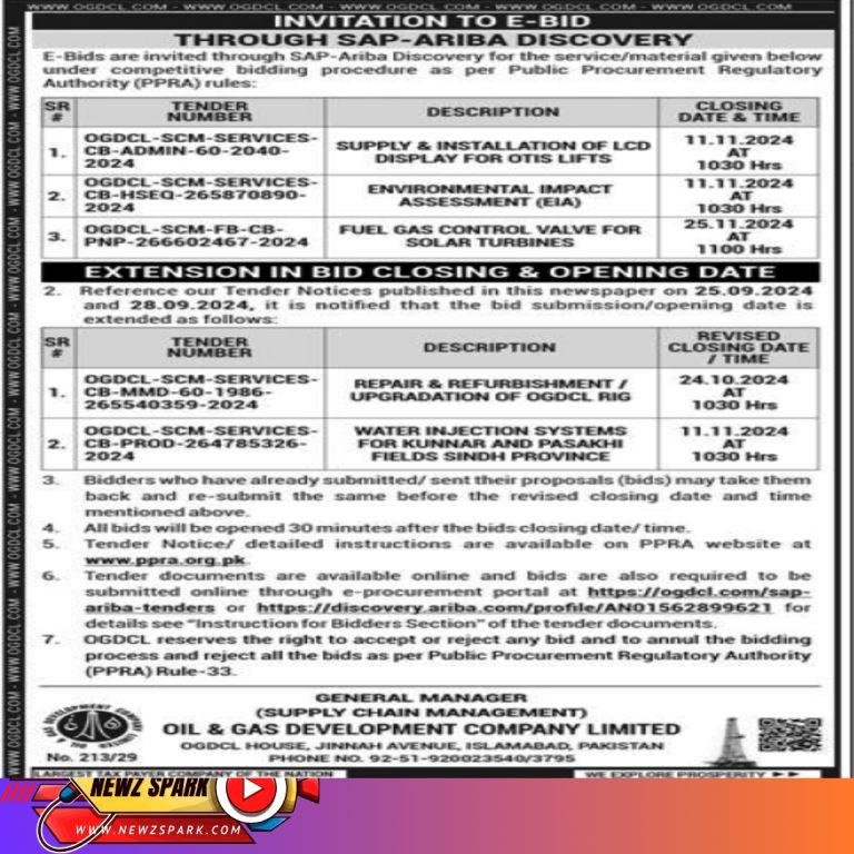 Tender for LCD and various Items in Oil and Gas Development Company Limited 2024