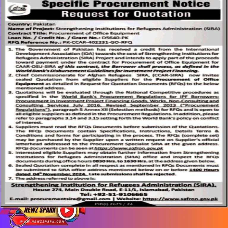 Tender for Office Equipment in SIRA 2024