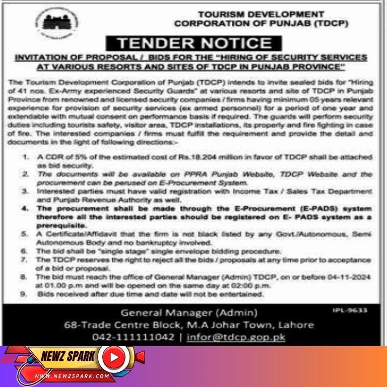Tender for Security Firms in Tourism Development Corporation of Punjab 2024