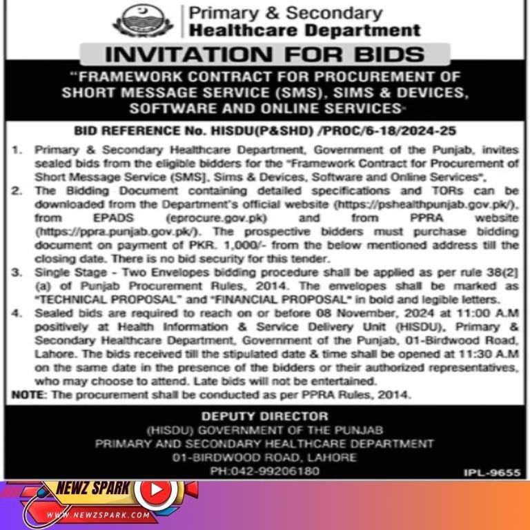 Tender for Software and SMS Devices in Primary and Secondary Healthcare Department 2024